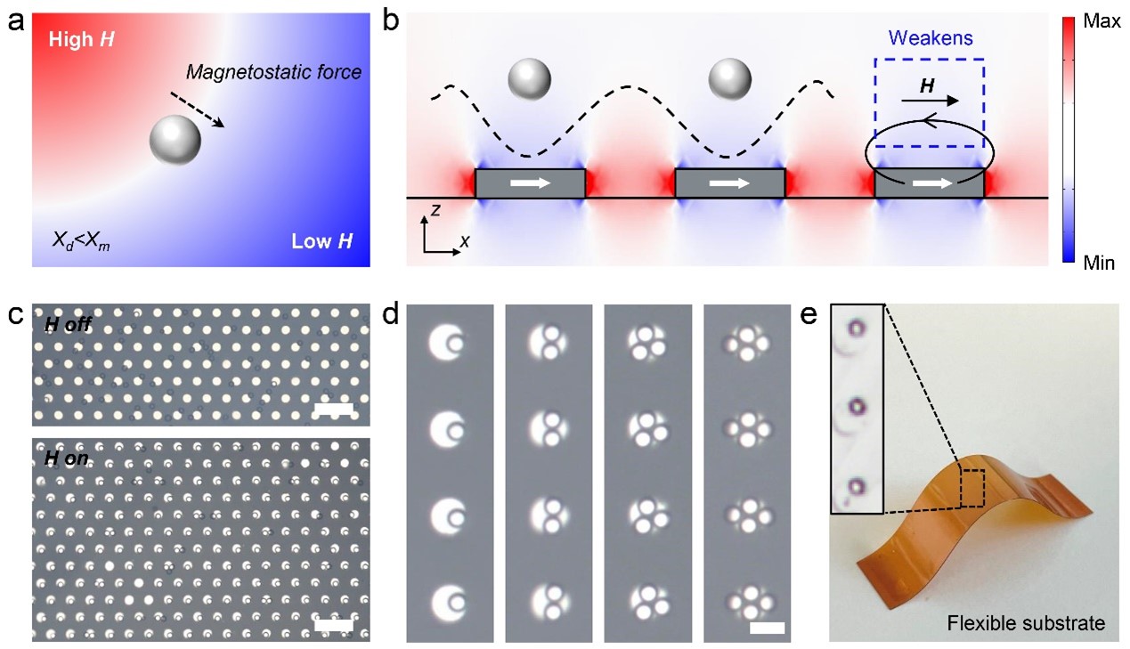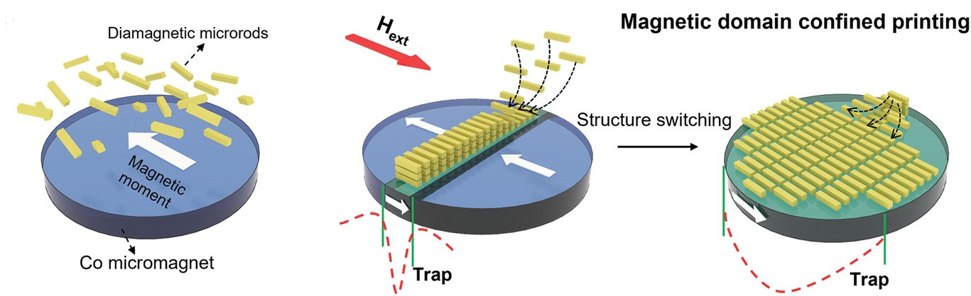 利用强度、空间分布可编程的外磁场将可控的驱动力引入到多尺度组装中,创造复杂的静态结构和磁控的动态结构,操纵微/纳米物质的运动过程以及磁学性质。进一步设计具有特定结构的新型光电功能材料,实现微/纳米物质运动过程的时间/空间调控、开发新颖的光电子器件。